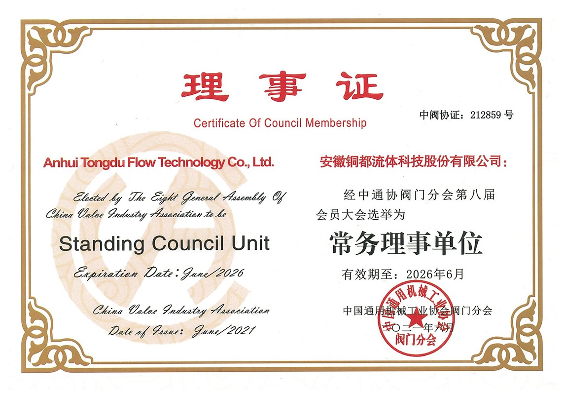 中國通用機械工業(yè)協(xié)會閥門分會常務(wù)理事單位