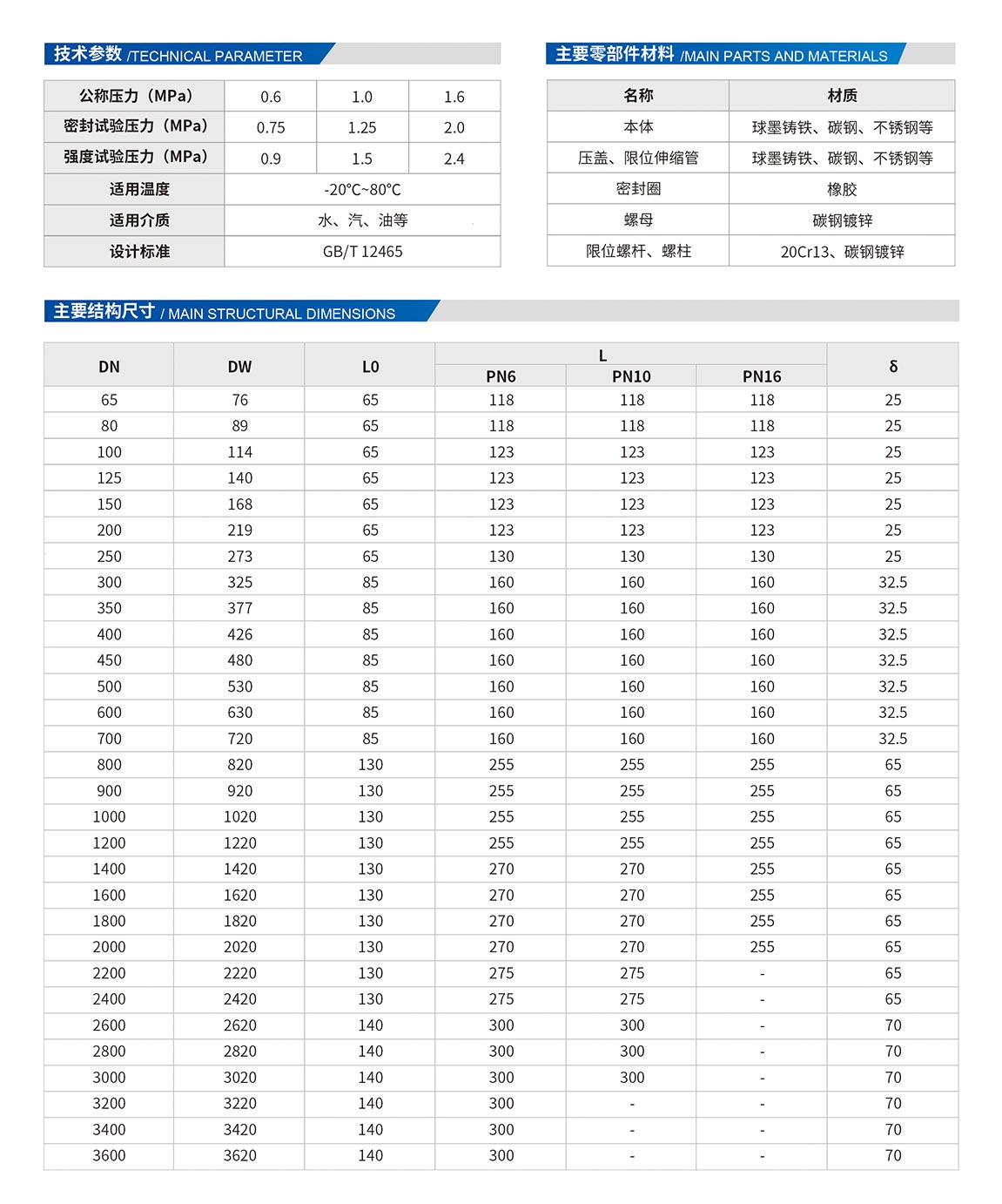 松套限位補償接頭可廣泛與蝶閥、閘閥、止回閥、截止閥等閥門及管道配套使用,可降低工程費用能有效解決閥門裝卸困難。主要用于管道與閥門連接,可防止管道在外部作用力及熱脹冷縮引起的內(nèi)部作用力較大時,拉脫伸縮接頭,造成不必要的管道泄漏事故。