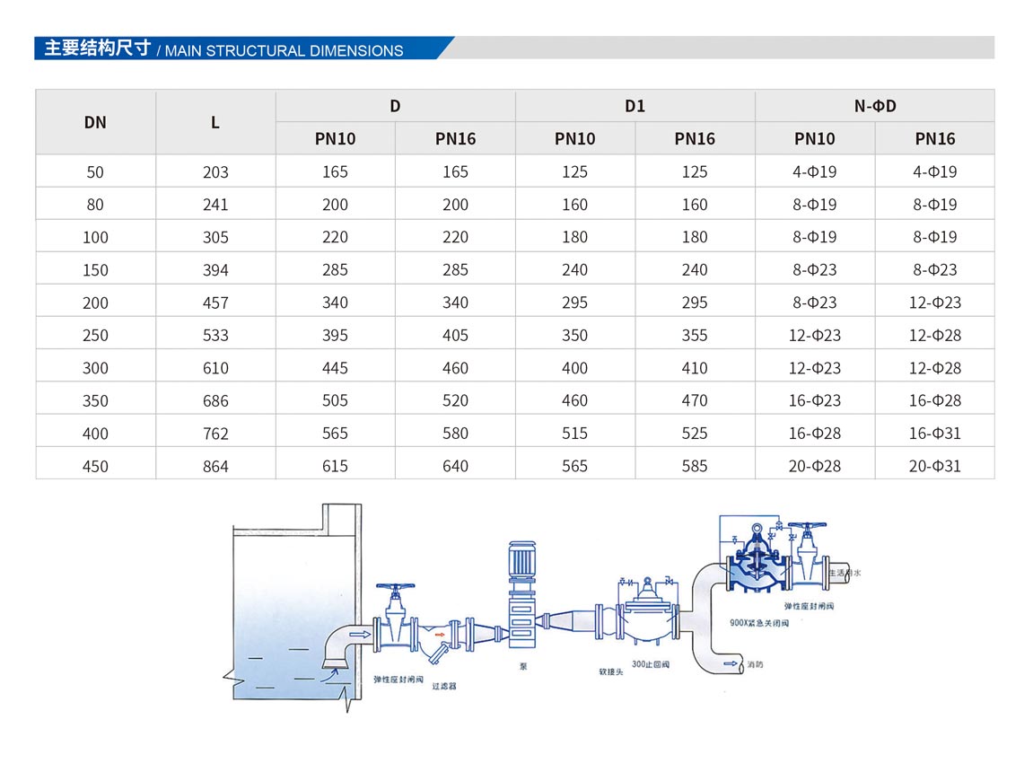 900X緊急關閉閥,是一種用于消防用水與生活用水并聯的供水系統中,用來調配供水方向的閥門。當火災發(fā)生時,消防急需大量用水,900X緊急關閉閥立即切斷生活用水,確保足夠的消防用水:當消防停止用水壓力減小時,閥門自動打開,呈常開狀態(tài),恢復生活供水。該閥使系統無須另設專門的消防單獨供水管網,大大地節(jié)約了建設成本和用水量。閥門控制靈敏度高,安全可靠,調試簡便,使用壽命長。
