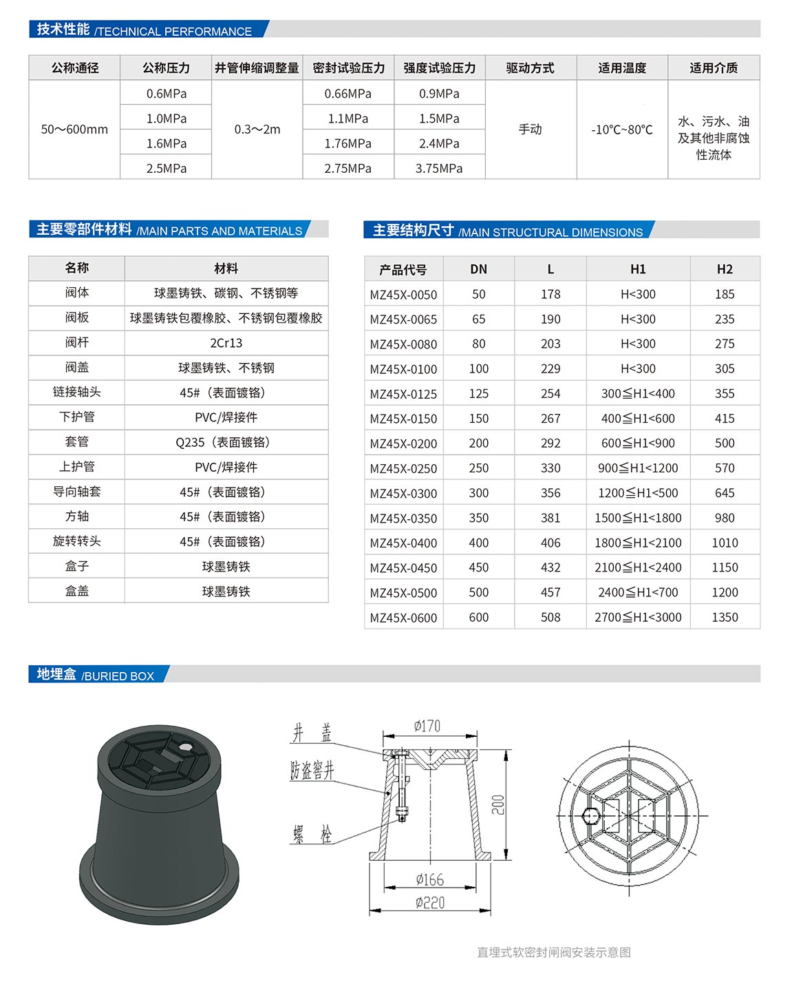 4、可防地面下沉:當(dāng)?shù)孛嫦鲁習(xí)r,由于閥門特定的伸縮桿結(jié)構(gòu),伸縮桿以及地埋盒會隨著地面一起下降,地面下降不會對閥門產(chǎn)生任何影響;